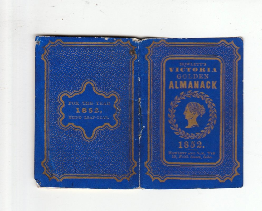 HOWLETT'S VICTORIA GOLDEN ALMANACK FOR 1852 Being Leap-Year.