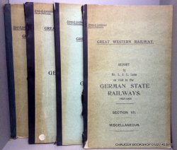 4 Sections of 7, Numbers III, IV, V, VII. Lacking Sections I, II and VI. Folio softbacks unifomly bound with black cloth spines and green card covers. 199; 154; 55 and 77pp. All four volumes profusely illustrated with maps, some folding, diagrams and b/w photos. A clean set with no previous owners' markings or inscriptions. Bindings and covers a little tatty but contents bright and tight and full of fascinating facts as to how the German State Railways were run between the wars. Overall a Good, if incomplete, Set.