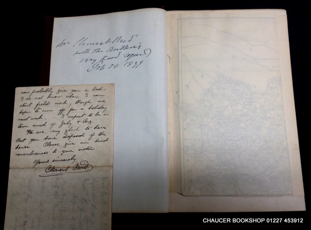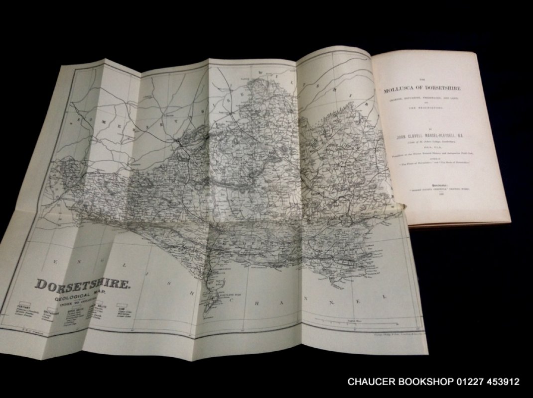 FIRST EDITION, PRESENTATION COPY. 8vo. dark red brown clothbound hardback, gilt with gilt illustration of mollusc to upper board. 110pp. plus Errata page at rear. Large folding Geological map of Dorset as frontispiece. Ink inscription, reading "Mr. Clement Reid with the Author's very kind regards, Feb. 24 1899". Contains loose handwritten letter, dated 1900, from the dedicatee concerning wher to find certain molluscs. 2 previous owners' bookplates to inside front cover and ffep. Very light wear to edges and tiny hole in centre of spine (please see photos). Overall a VERY GOOD COPY.