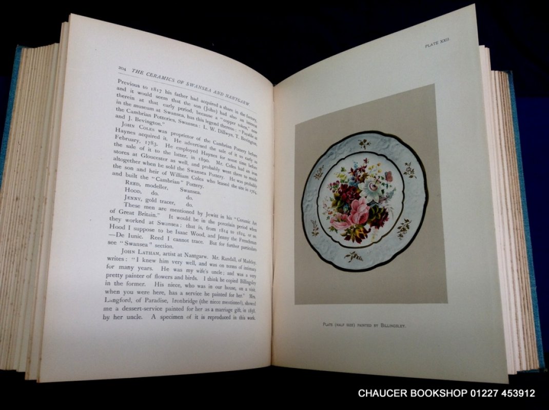 THE CERAMICS OF SWANSEA AND NANTGARW: A History of the Factories. With Biographical Notices of the Artists and Others, Notes on the Merits of the Porcelains, the Marks thereon, etc. Also an Appendix on the Mannerisms of the Artists by Robert Drane.