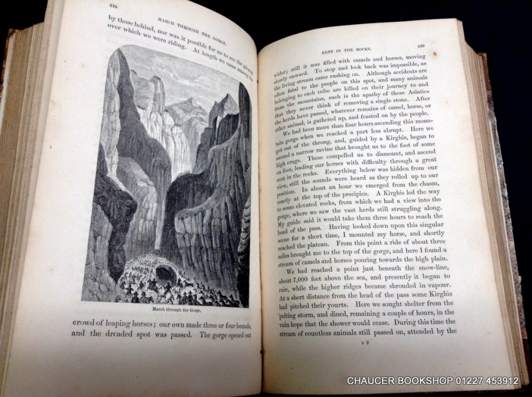 FIRST EDITION 8vo. half calf with marbled boards. Raised bands, gilt to spine. 570pp., illustrated with colour frontis., many b/w engravings through the text and a folding map at rear. Elegant bookplate of Darenth Vale Literary Institute on ffep. No other ex. library markings and no inscriptions or markings. Some foxing to first and last few pages. Binding very rubbed and worn but solid and intact. Overall a Good Copy.
