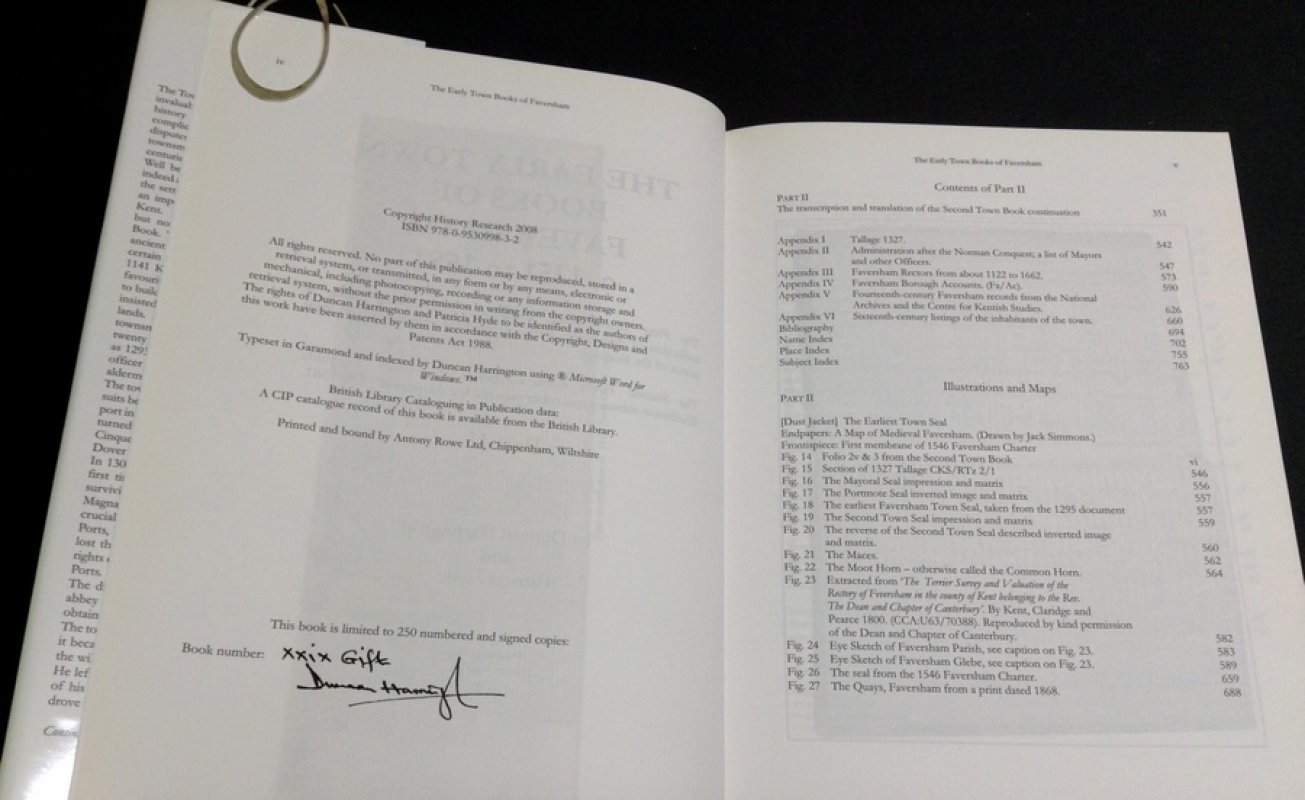 The Early Town Books of Faversham c.1251 to 1581 (2 Volumes, SIGNED COPIES) The First Town Book, compiled c.1382-c.1405, being a collection of documents dating from 1251 relating to the legal status of the Borough. The Second Town Book comprises the Town Accounts, Wardmote minutes and other records for the period 1436-1581.