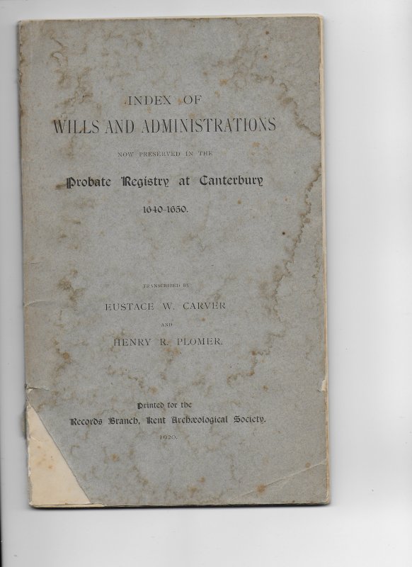 INDEX OF WILLS AND ADMINISTRATIONS NOW PRESERVED IN THE PROBATE REGISTRY AT CANTERBURY 1640-1650