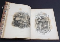4to. hardback, three-quarter bound in calf with raised bands, gilt to spine and maroon buckram-bound boards. Contains 2 volumes of Gallery of Modern British Artists bound as one, plus title pages, 2 engraved plates and 16pp. of text from Tallis's History and Description of the Crystal Palace and the Exhibition of the World's Industry in 1851. bound in at front. Gallery of Modern British Artists: Engraved title page dated 1836, typographic title page dated 1834, 68pp. text plus 74 of 76 engraved plates (including title page and frontispiece). Crystal Palace: engraved frontispiece of the Crystal Palace, colour title page, typographic title page, iv Introduction with 2 engraved plates and 16pp. only of main text. A clean copy with no previous owners' markings or inscriptions. Some foxing throughout, occasionally heavy, but generally not affecting plates. Buckram boards faded and soiled, calf to boards and corners rather rubbed and worn, calf of spine a little scuffed but still quite handsome. Overall a Good Copy........FOR FURTHER DESCRIPTION, PLEASE ENQUIRE. NEW TITLE TO OUR SHOP STOCK