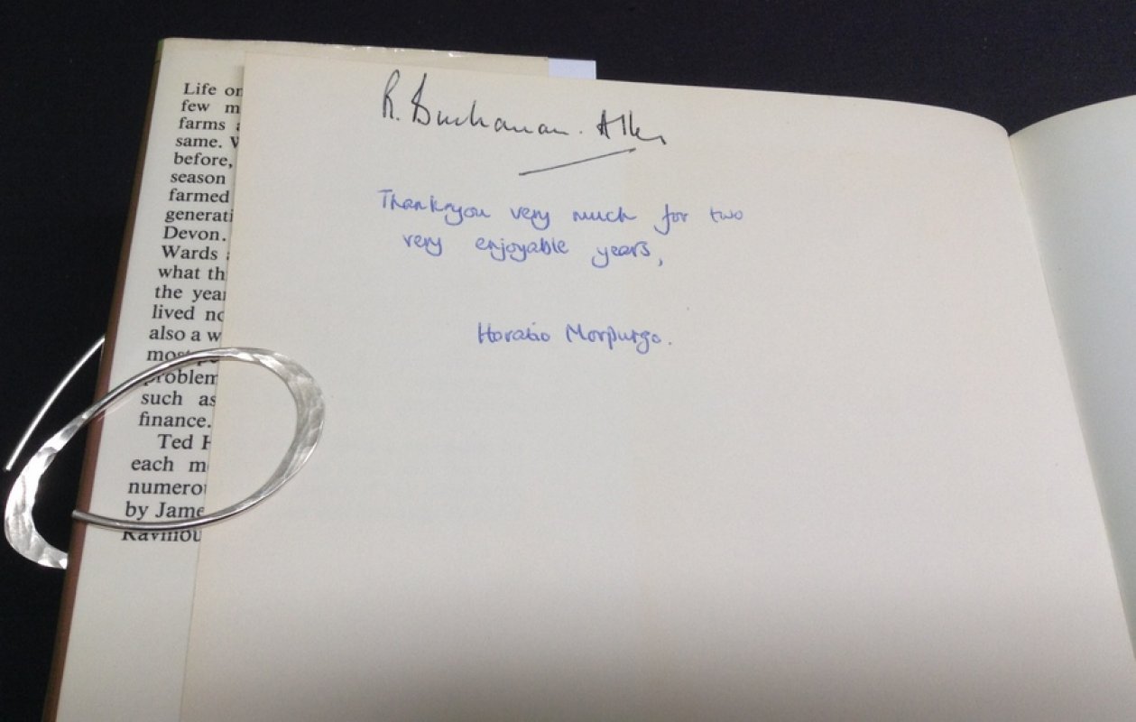FIRST EDITION, Signed by Michael Morpugo plus presentation inscripition by his son to his teacher, R. Buchanan Allen. 4to. dark green clothbound hardback, gilt, in dust jacket. 208pp., profusely illustrated in b/w. Michael Morpugo's signature in blue ink to title page, his son Horatio's inscription to his teacher, also in blue ink and R. Buchanan Allen's (the teacher) signature in black ink to blank facing half title. Slight damage (possibly worming) to outer edge of rfep. Fading/discolouration to dust jacket spine and edges. Light shelfwear with a couple of tiny closed tears to dust jacket edges. Overall VG in Good+ dust jacket.