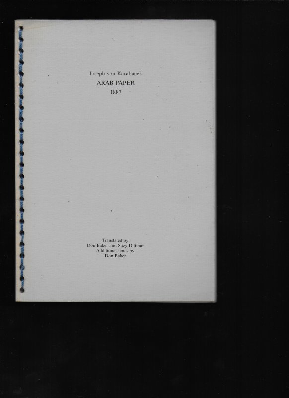 ARAB PAPER 1887 Translated by Don Baker and Suzy Dittmar. Additional Notes by Don Baker.