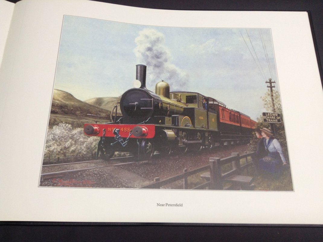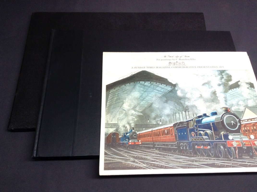 LIMITED EDITION of 3000 copies, this one hand-numbered 194. Folio, black clothbound hardback gilt, with matching slipcase; 78pp, illus throughout in colour and b/w. Clean copy with no previous ownership inscriptions or annotation. Includes Commemorative Presentation set of six colour prints by C Hamilton Ellis in a foldout colour illustrated card wallet, plus seven other railway associated posters, loosely inserted. Faint handling marks to covers, slight edgewear to slipcase, otherwise VG in a VG slipcase.