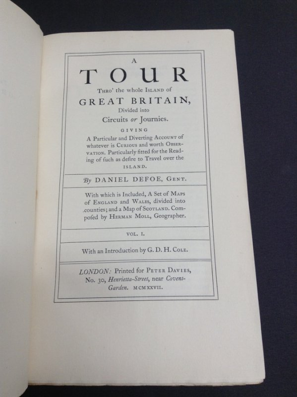 LIMITED EDITION of 1000 copies designed by Stanley Morison and printed at the Cambridge University Press by Walter Lewis. 2 volumes. 8vo. hardbacks with vellum spines, gilt, and marbled boards. t.e.g. Foredges and lower edges untrimmed. 858pp. over the two volumes, both illustrated with b/w county maps by Moll. A clean set with no previous owners' markings or inscriptions. Very light foxing to prelims and foredges. Light soiling to vellums spines, else a VERY GOOD SET.
