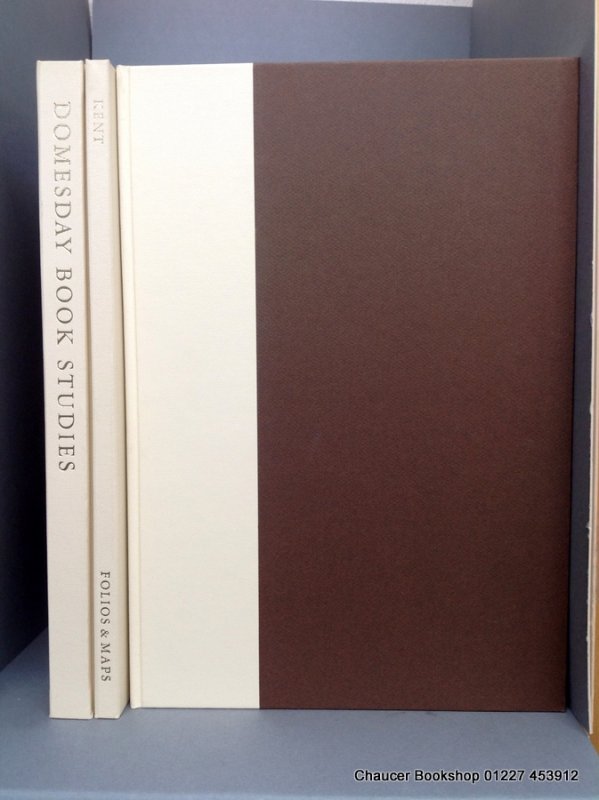 This Volume of The County Edition of The Great Domesday Book Limited to 1000 copies, This is Set Number 191. Three Folio volumes, bound in quarter cream cloth, with dark brown paper-covered boards: Domesday Book Studies (illus with b/w plates), Folios and Maps (with folding map to pocket inside front cover), and The Kent Domesday. A set in Very Good condition.
