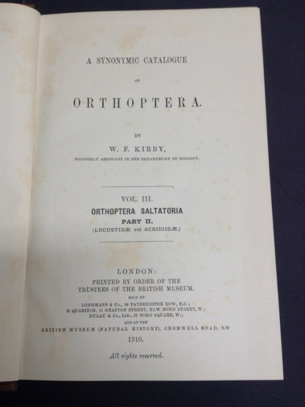 A SYNONYMIC CATALOGUE OF ORTHOPTERA (Volume III only) Vol. III Orthoptera Saltatoria Part II (Locustidae vel Acridiidae)