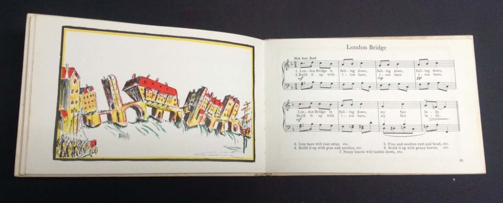 Second Printing. Landscape 8vo. hardback, in colour pictorial paper-covered boards, with unclipped dust jacket; 63pp, with colour illustrations and musical scores throughout and b/w pictorial endpapers. Clean copy with no previous ownership inscriptions and annotation. Foxing to edges, a few faint marks to pages, boards also a little foxed, a few small handling marks to dust jacket, faint dampstained area to rear cover. Overall VG/VG.