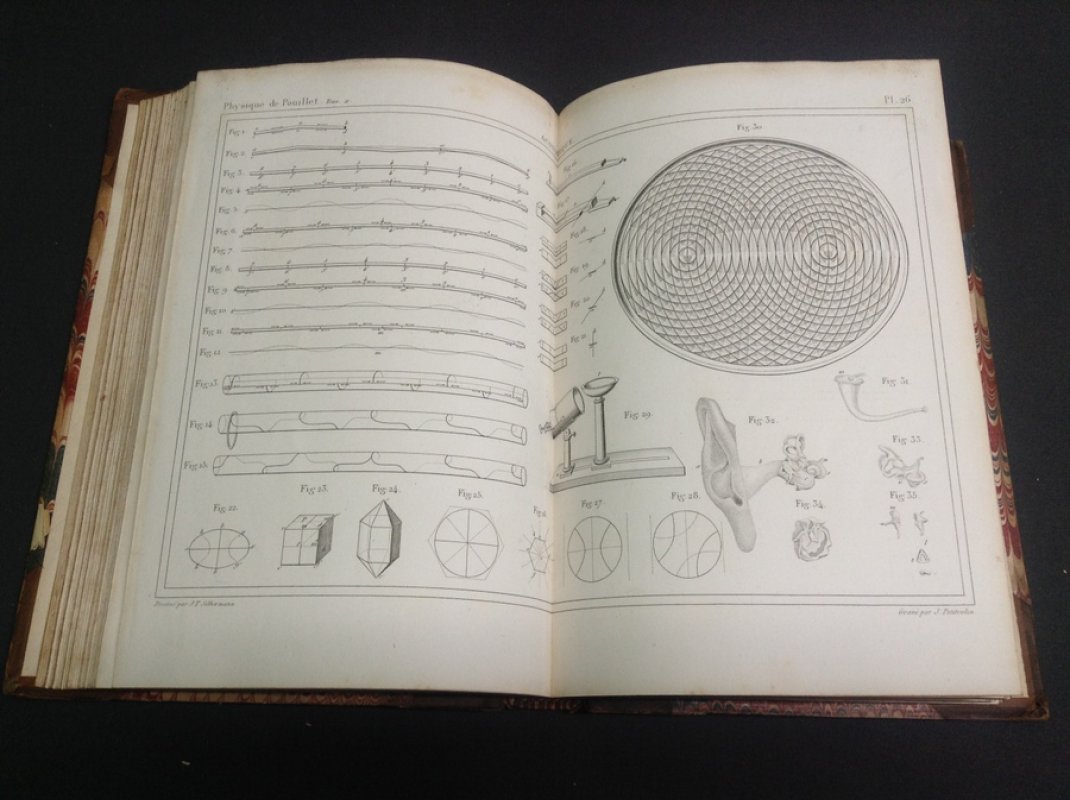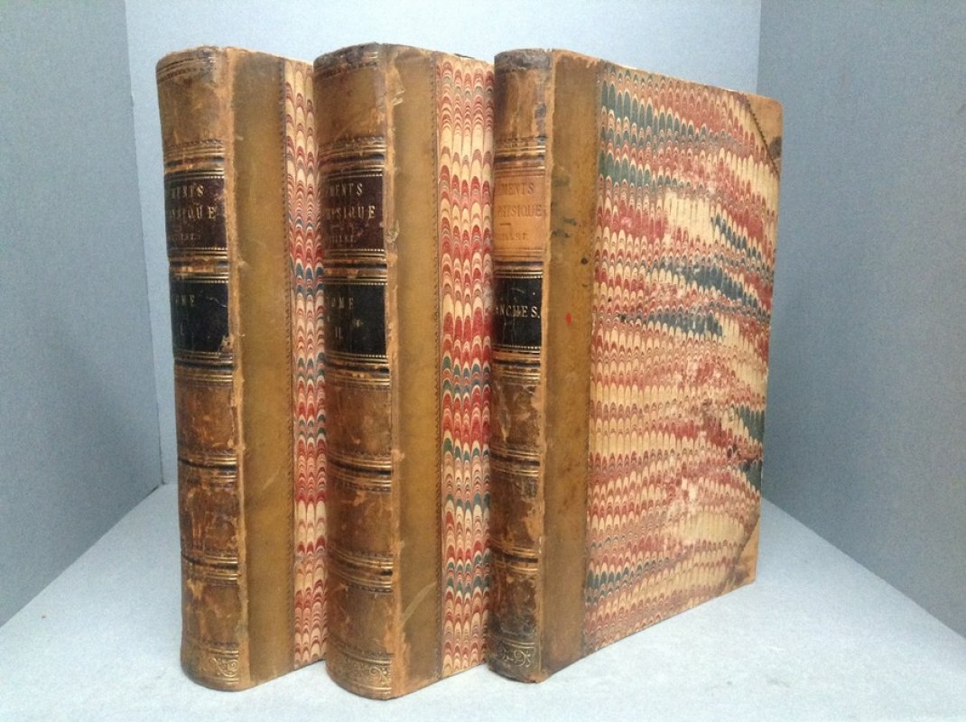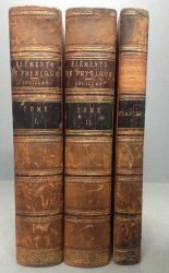 Sixth Edition 3 Volumes 8vo. (2 volumes of Text approx. 22 x 14cm and 3rd volume of Plates approx. 22 x 16cm) hardbacks half-bound in tan calf with raised bands, maroon and black title labels, gilt, to spines and marbled boards. TEXT IN FRENCH. Volumes I and II: 836, 852 with occasional tables, some folding, and diagrams. Volume III: pages unnumbered, comprising 49 engraved double-page plates printed one side only. Each volume has ink signature and date (1854) to ffep. Some foxing to prelims and occasionally to text pages. Light occasional foxing to plates. Maroon title label to Vol. III missing. Some wear and rubbing to spines and boards. Overall a Good Set.