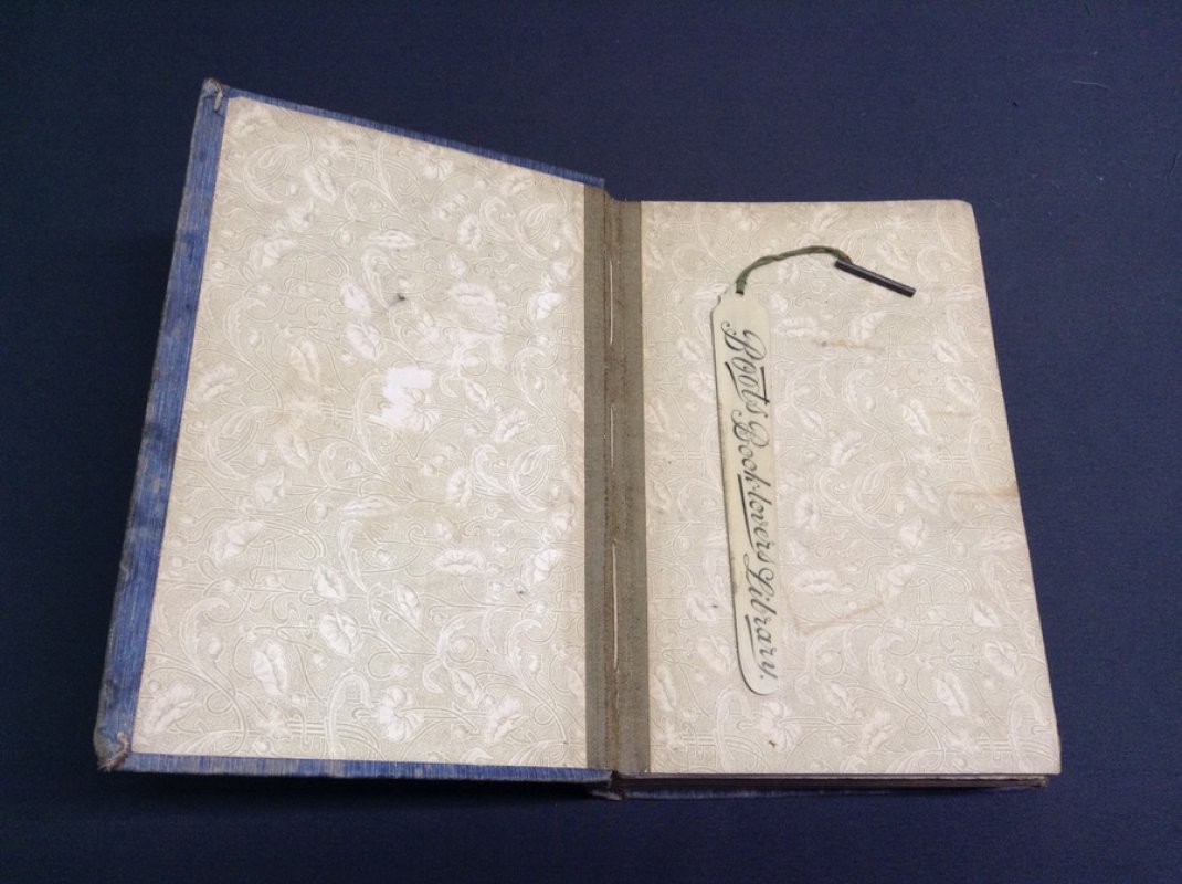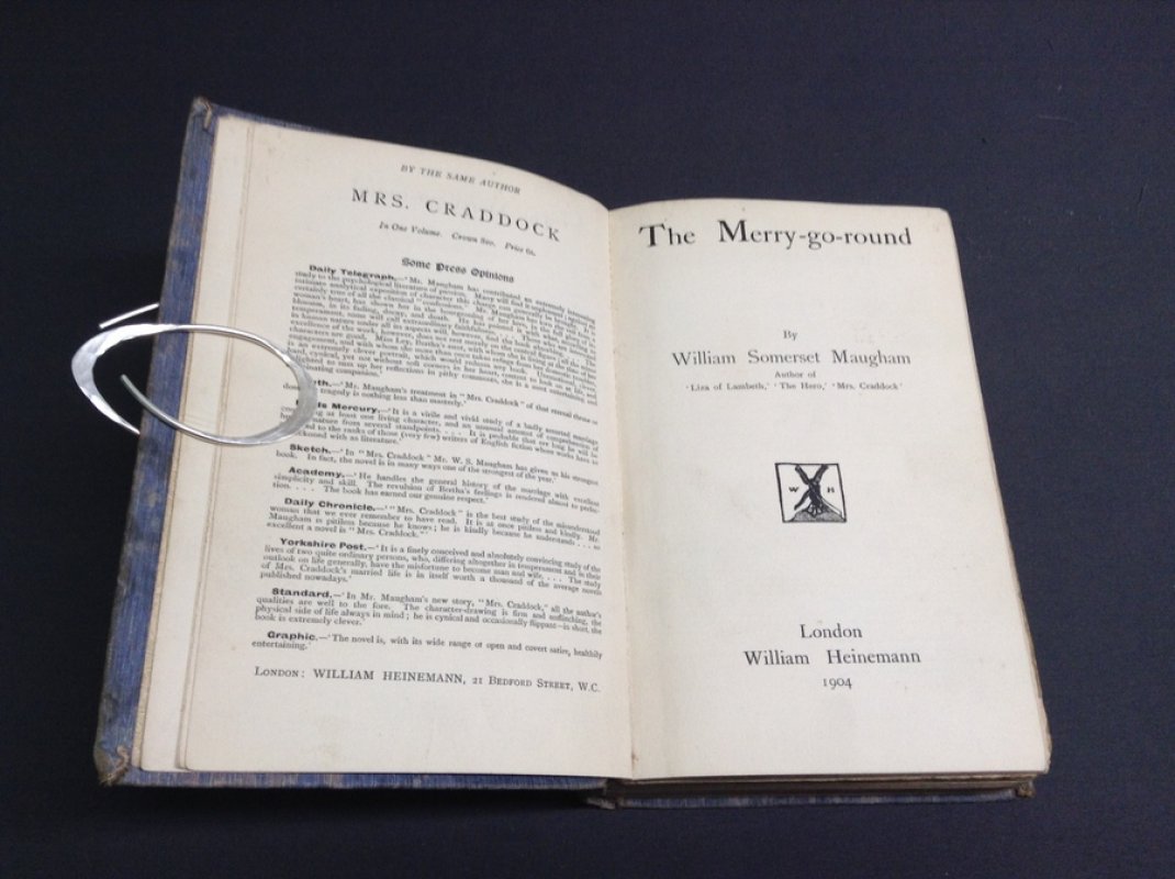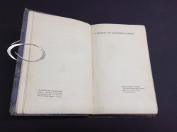 FIRST EDITION 8vo. mid-blue cloth with ornate gilt titles to spine (rebound for Boot's Book-lovers Library, possibly around 1910, with slight trimming to edges but not affecting text). Sage green Art Nouveau patterned endpapers, reinforced at inner hinges. With detached ivory bakelite bookmark with Boot's Book-lovers Library printed on one side and Membership details, dated 1916, hand-written on reverse. Library label to rear pastedown and lighter area to upper board where Boot's Library sticker was. Light marks to endpapers from removal of tape. Occasional light soiling. Covers somewhat worn and faded. A poor, sound but unusual copy.