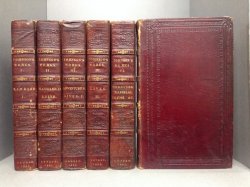 First Thus. Six Volumes, 8vo., in full brown morocco gilt, with raised bands to spine with gilt decorations, blind-stamped decorative borders to upper and lower covers, gilt dentelles, a.e.g., Vol. I with engraved portrait frontis. Armorial bookplate of Maximilian D.D. Dalison to front pastedown of Vol. I. Pages viii-ii becoming loose, and edgeworn as a result. Boards somewhat rubbed at corners and edges, dark indented line to rear cover of Vols. I, II, III, and VI. Light soiling to spine of Vol. V. A Good set overall.