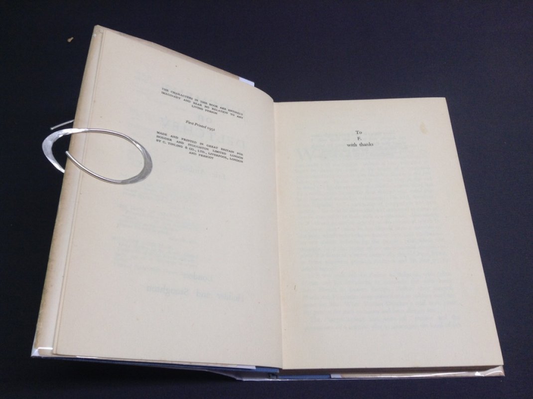 FIRST EDITION, FIRST ISSUE (with dust jacket art by Leslie Wood) SIGNED COPY 8vo. mid blue cloth hardback, in original unclipped dust jacket. 256pp. Inscibed in ink to ffep,