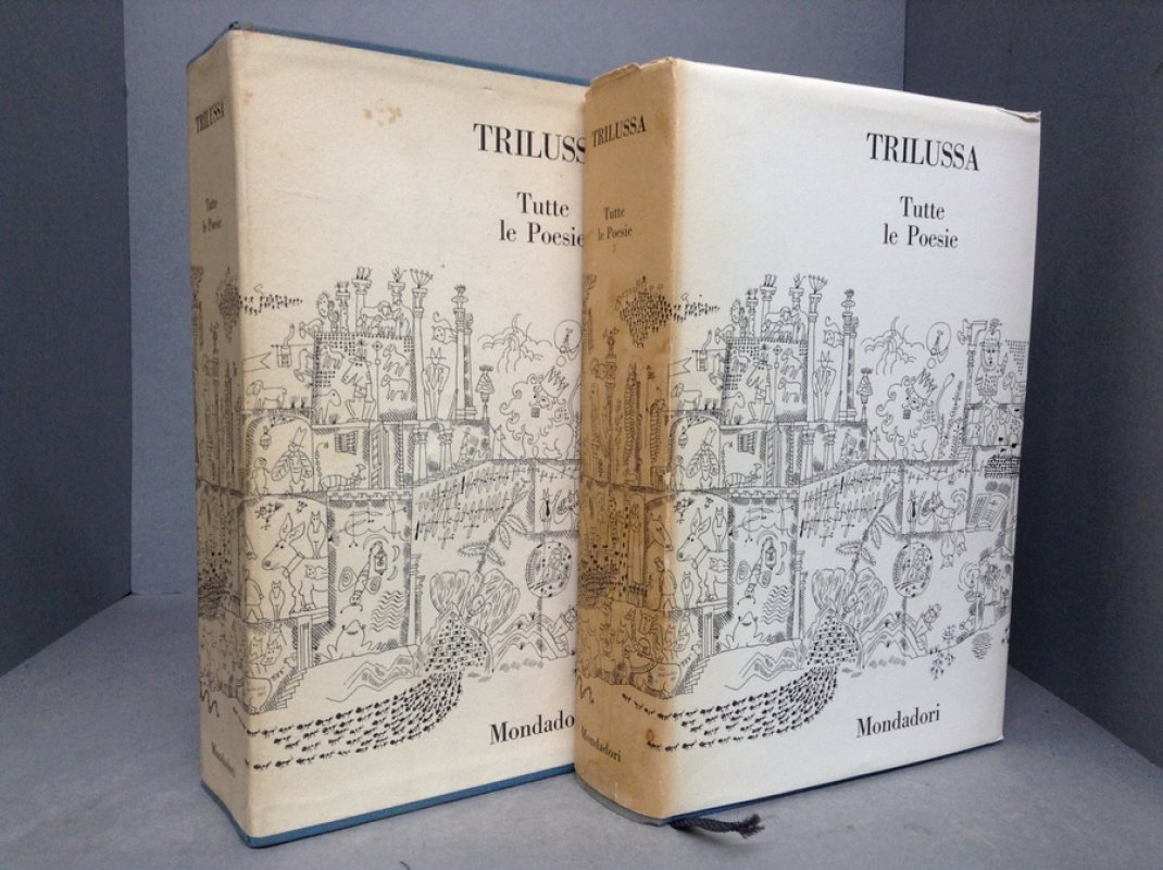 Twelfth Edition 8vo. blue cloth hardback, gilt, in illustrated dust jacket and matching illustrated slipcase. TEXT IN ITALIAN. 1017pp., Indexed, illustrated with b/w etched portrait frontispiece and 32 drawings by Trilussa printed in sanguine. Loose printed sheet (3 facsimiles of letters) in pocket at rear. A clean copy with no previous owners' markings or inscriptions. Dust jacket spine somewhat tanned and lightly soiled, slipcase similar. Overall VG/VG.