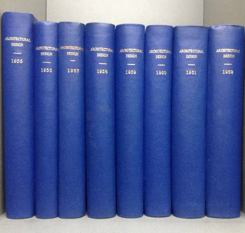 8 bound volumes of Architectural Design magazine, each containing 12 monthly issues and Supplements. 4to. (approx. 31 x 22cm) royal blue buckram, gilt. Each volume profusely illustrated in b/w and colour. A clean set with no previous owners' markings or inscriptions. Occasional light foxing to foredges else a VERY GOOD SET.