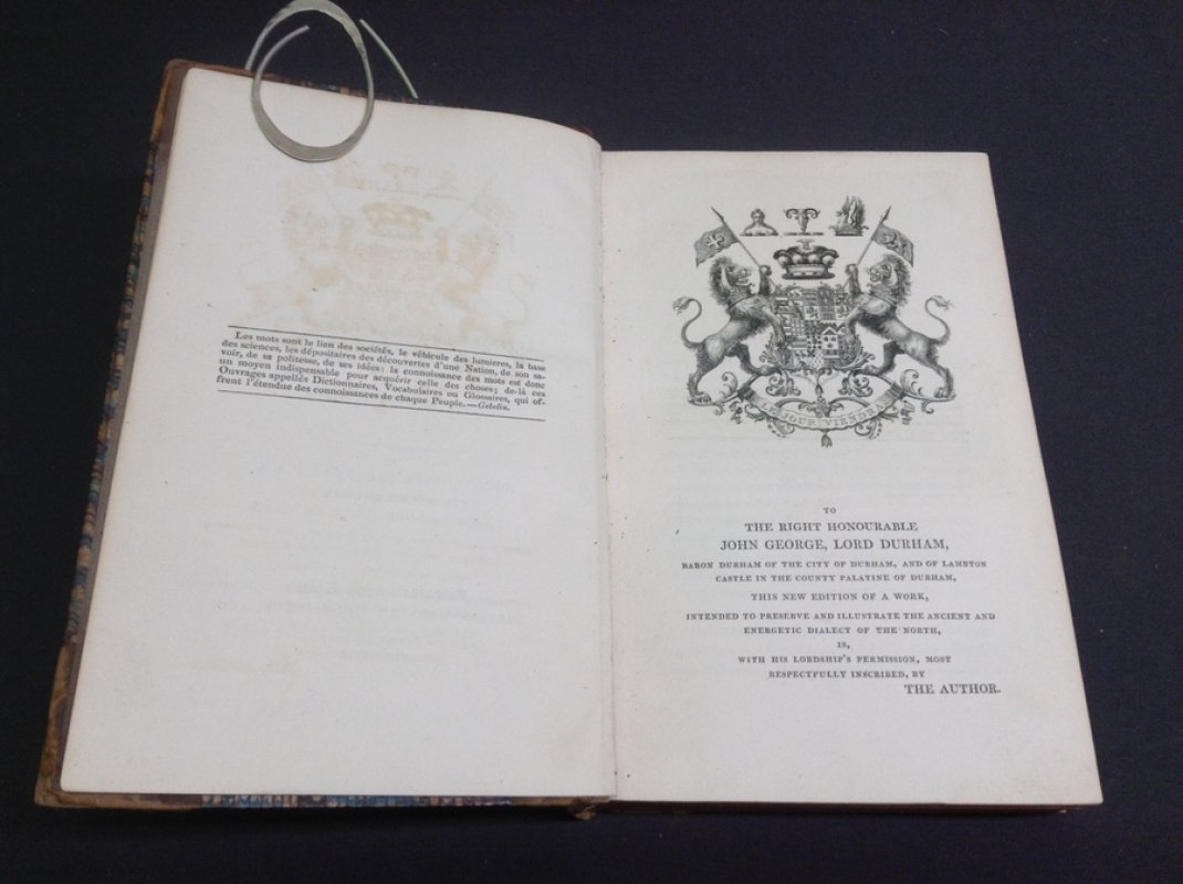First Thus. (Previously published by T & J Hodgson, Newcastle, 1825) 8vo. hardback in half calf with red title label, gilt, to spine and marbled boards. 343pp. with armorial dedication page. A clean copy with no previous owners' markings or inscriptions. Upper board detached, lower board hanging by a few threads, and lacking most of spine (except title label). Rest of binding in good, firm condition. Overall a Good Reading Copy.