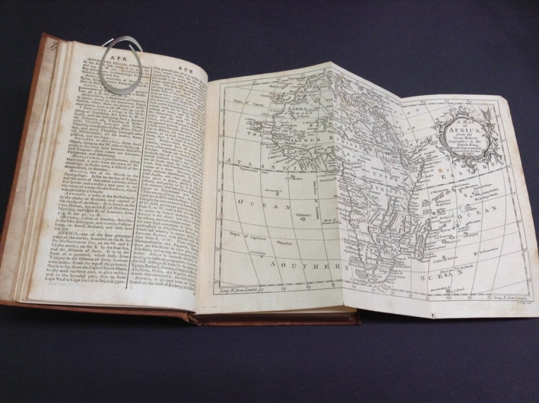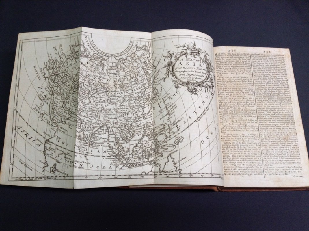 Fourth Edition, improved with Additions and Corrections. 8vo. (approx. 21.5 x 13cm) full calf with raised bands, red title label, gilt, to spine. Pages unnumbered. Text in double columns. 1 page Publisher's advertisements at end. Illustrated with 9 folding maps including a Map of the World as frontispiece. Neat pencil inscriptions to front endpapers. No other markings or inscriptions. Occasional light foxing. Lower, outer corner of one page torn with small loss of text. Light wear and rubbing to spine. Overall a GOOD+ COPY.