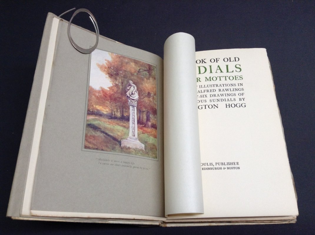 A BOOK OF OLD SUNDIALS & THEIR MOTTOES (Cover design by Jessie M. King) With Eight Illustrations in Colour by Alfred Rawlings and Thirty-six Drawings of some Famous Sundials by Warrington Hogg.