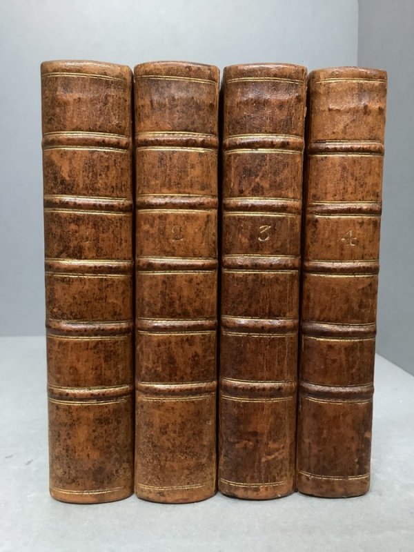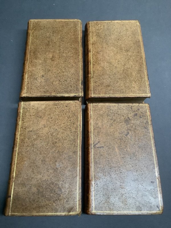 FIRST EDITION 12 Monthly Volumes, bound as 4 Volumes. Small 8vo. (approx. 16.5 x 9.5cm) in full 18th Century calf with raised bands and gilt rules and numerals to spines and gilt rules to boards. Blind-embossed decoration to board edges. All half titles bound in and Publisher's 4pp. advertisement to Vol. XII. Ink initials to ffep of Vol. III. No other markings or inscriptions. Second gather to Vol. III slightly proud and loose at top. Occasional light foxing, somewhat heavier to prelims. Occasional creases to pages. Gilt numerals to spines somewhat rubbed and faded. Light rubbing and edgewear. Overall a GOOD+ SET.