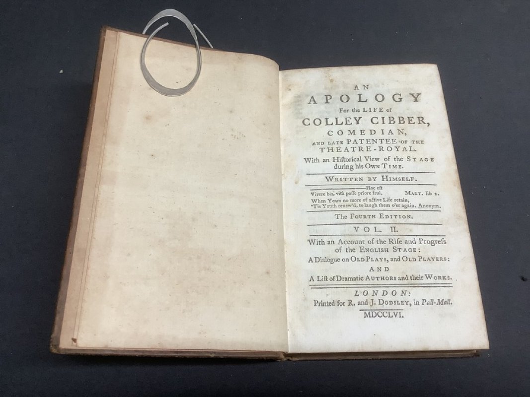 AN APOLOGY FOR THE LIFE OF COLLEY CIBBER, COMEDIAN, AND LATE PATENTEE OF THE THEATRE-ROYAL. With an Historical View of the Stage during his Own Time. Written by Himself. (2 Volumes, complete) The Fourth Edition. In Two Volumes. With an Account of the Rise and Progress of the English Stage: A dialogue on Old Plays, and Old Players: and A Life of Dramatic Authors and their Works.