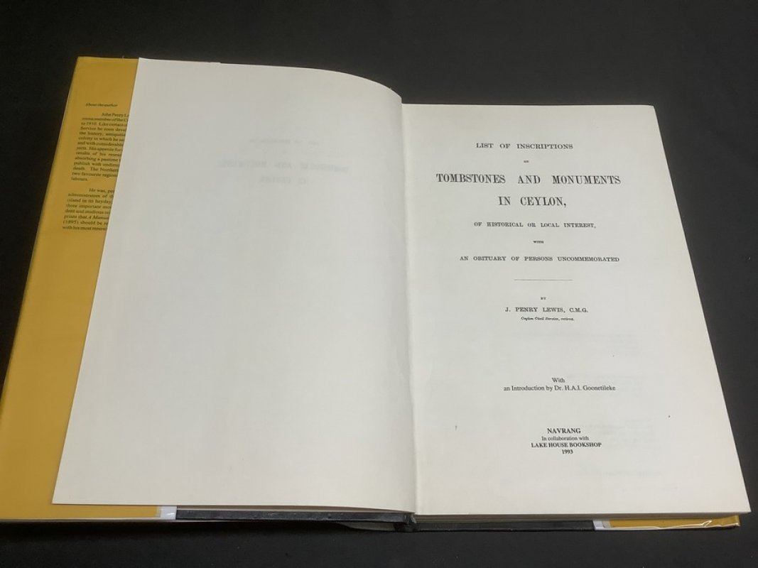 List Of Inscriptions On Tombstones And Monuments In Ceylon, Of Historical Or Local Interest, With An Obituary Of Persons Uncommemorated