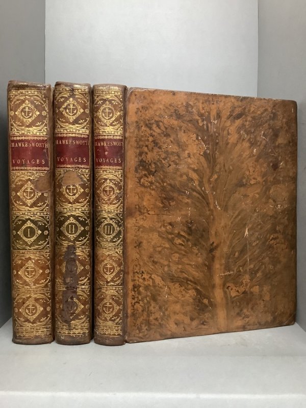 AN ACCOUNT OF THE VOYAGES UNDERTAKEN BY THE ORDER OF HIS PRESENT MAJESTY FOR MAKING DISCOVERIES IN THE SOUTHERN HEMISPHERE (3 Volumes) And successively performed by Commodore Byron, Captain Wallis, Captain Carteret, and Captain Cook, in the Dolphin, the Swallow, and the Endeavour: Drawn up from the Journals which were kept by the several Commanders, and from the Papers of Joseph Banks Es