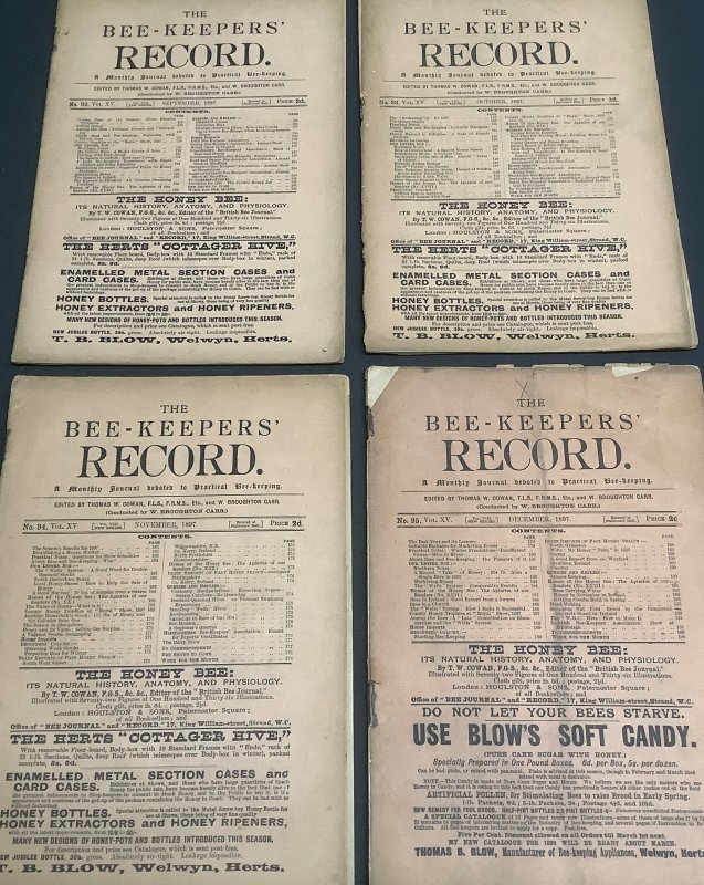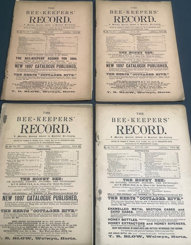 THE BEE-KEEPERS' RECORD. A Monthly Journal Devoted to Practical Bee-Keeping. Volume XV Nos. 84-95 January to December 1897 (12 individual magazines)