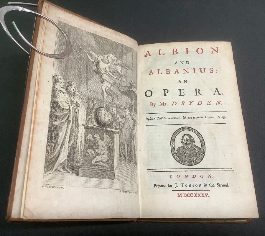 ALBION and ALBANIUS: An Opera (1735); AS YOU LIKE IT: A Comedy (1741); THE SCORNFUL LADY: A Comedy (1733); THE ROYAL MERCHANT or THE BEGGARS BUSH: A Comedy (1735); HYPERMNESTRA or LOVE IN TEARS: A Tragedy (1722) 5 PLAYS BOUND IN 1 VOLUME