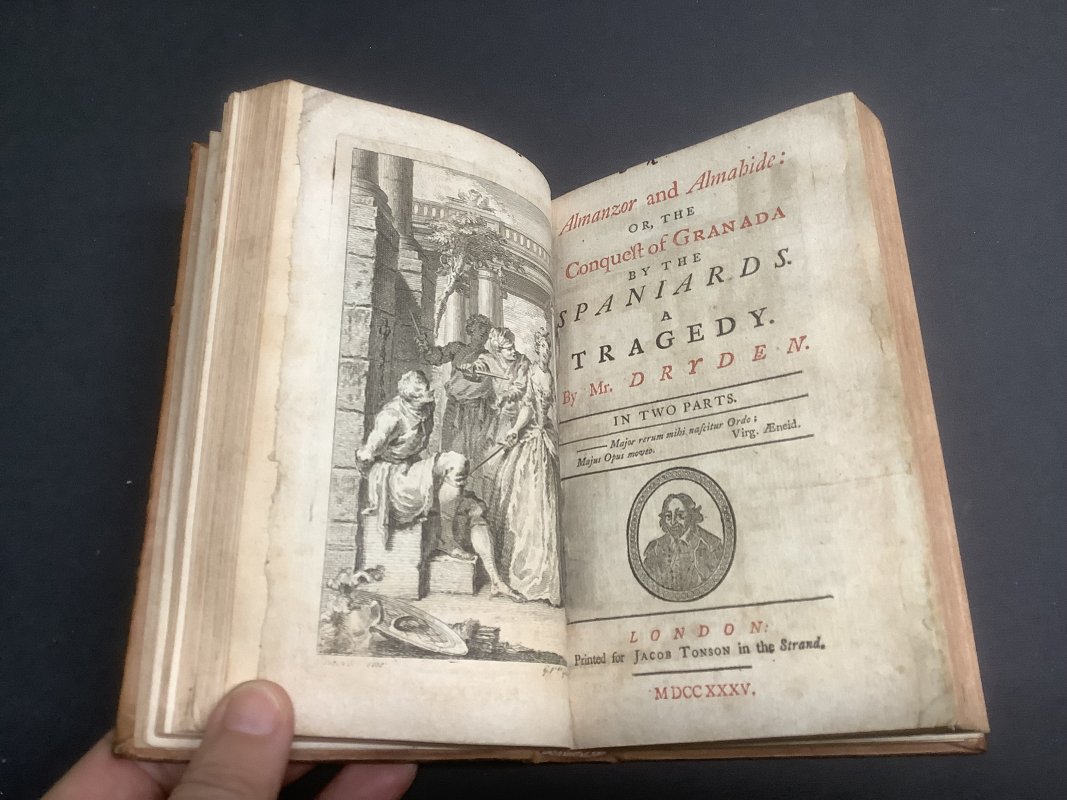 ALL FOR LOVE or THE WORLD WELL LOST: A Tragedy (1752); ALMANZOR AND ALMAHIDE or THE CONQUEST OF GRANADA BY THE SPANIARDS: A Tragedy. In Two Parts (1735); EASTWARD HOE or THE APPRENTICES: A Comedy [1751] 4 PLAYS BOUND IN 1 VOLUME
