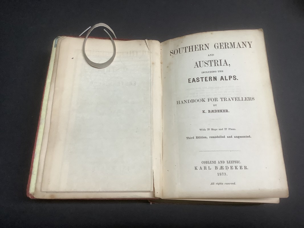 Third Edition, Remodelled and Augmented (and the last to include the Eastern Alps), with 'June 1873' at foot of Baedeker's Guide Book list to front pastedown. With 28 maps and 27 plans. Small 8vo., in red cloth flexible boards gilt, with gilt lettering to upper cover, marbled edges; [xxiv] + 516pp, indexed, with 28 maps, some foldout including two railway maps at rear (all present) and 27 town plans. Previous owner's pencil name to ffep, plus occasional pencil annotation to text. Edges darkened, some slight foxing to rear endpapers and railway maps, plus occasionally throughout, some maps a little edgeworn and with a few short closed tears, inner hinges a little stretched, covers also a little edgeworn, spine slightly faded and discolored, wear to ends. A Good, Sound copy overall.
