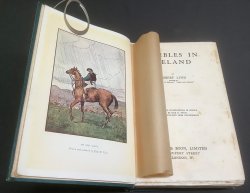 First Edition. 8vo., blue buckram-bound hardback, with green lettering and colour illustration by Jack Yeats laid on to upper board within impressed line border; 312pp + 40pp publisher's catalogue at end, tissue-protected colour frontis plus 3 other colour plates (one foldout) by Jack Yeats, and 25 half-tone photographs. Faint pencil inscription dated 1917 to ffep, and one dated 1933 to rear pastedown. Heavy foxing to edges and less heavily throughout, browning to last 32 pages of publisher's catalogue, rubbing and small mark to upper cover illustration, light wear to corners of boards and spine ends.