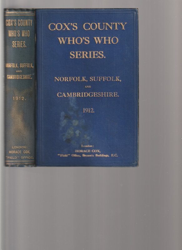 Cox's County Who's Who Series: Norfolk, Suffolk and Cambridgeshire. 1912.