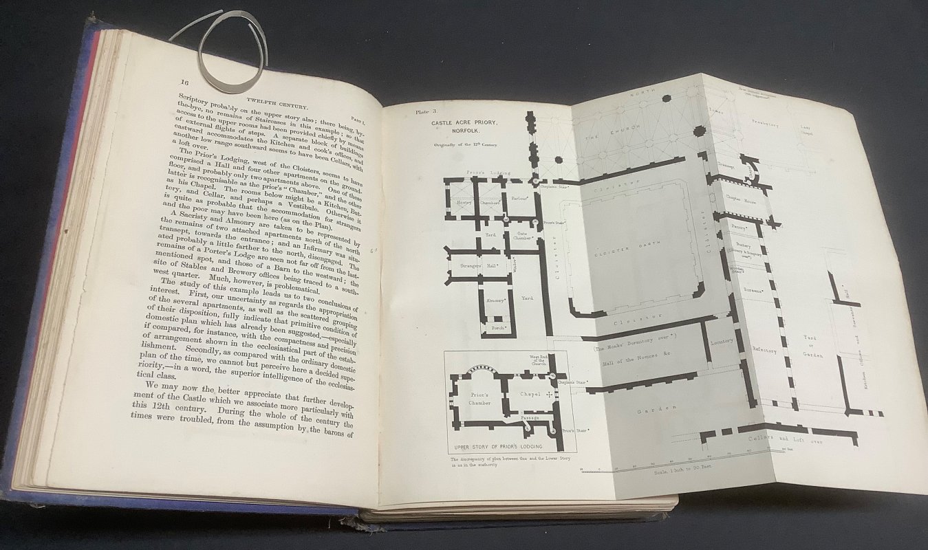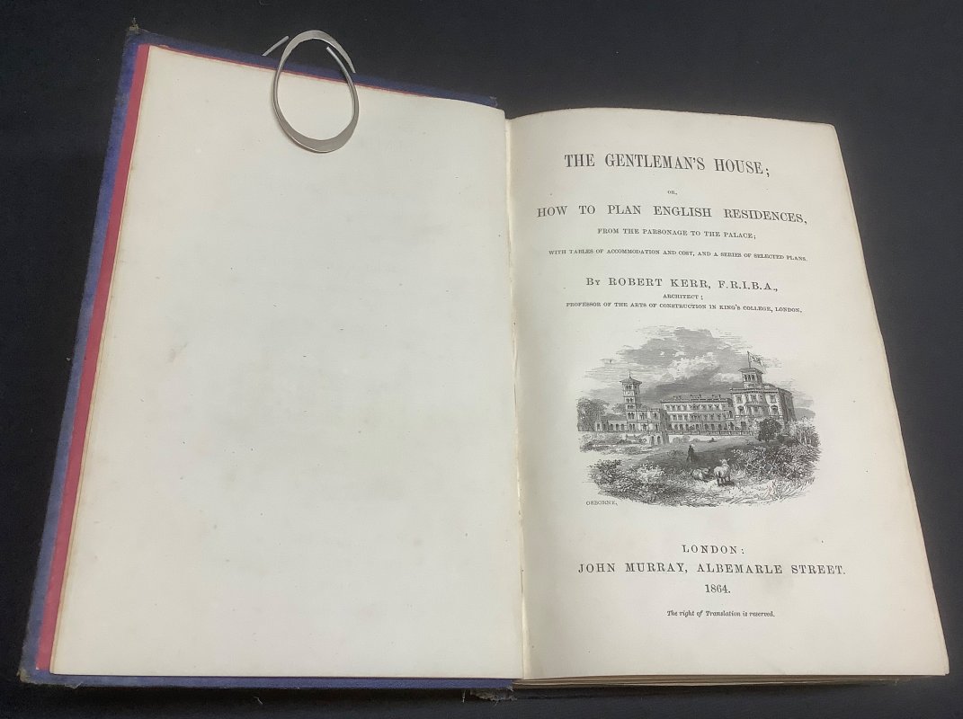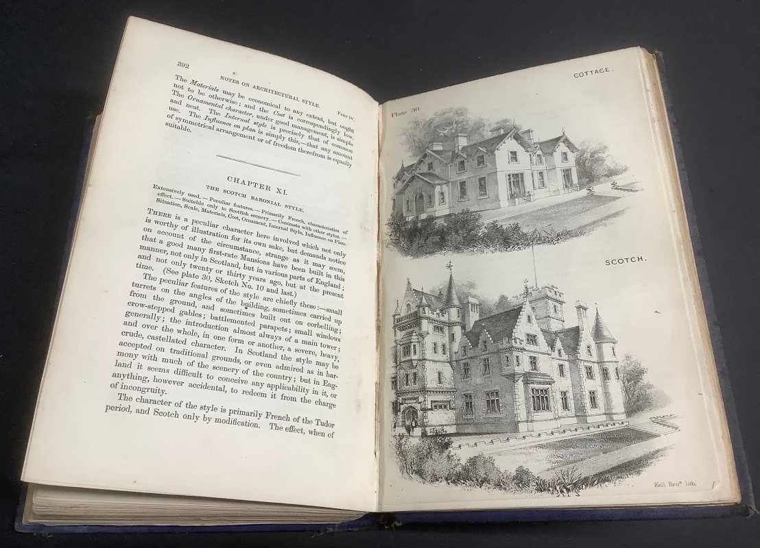FIRST EDITION 8vo. blue cloth hardback, gilt. 484pp. with 20 wood-engravings within the text, plus 44 plates of plans and elevations, mostly fold-out. Previous owner's small bookplate (pasted over another, earlier one) to front pastedown. Occasional light foxing, mainly to prelims. Front and rear inner hinges a little weak with splitting to the endpapers. Top, base and edges of spine rather worn with slight loss. Boards somewhat rubbed and soiled with light edgewear. Overall a Good, Sound copy.