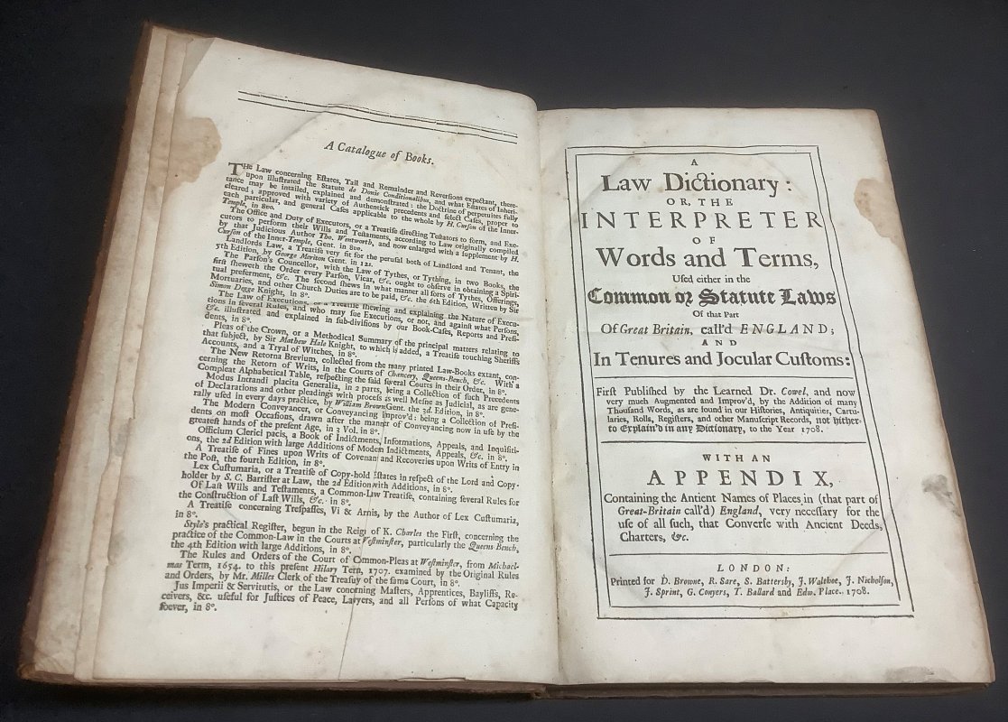 A LAW DICTIONARY: or The Interpreter of Words and Terms, used either in the Common or Statute Laws of that Part of Great Britain, call'd England; and in Tenures and Jocular Customs. With an Appendix, Containing the Antient Names of Places in (that part of Great-Britain) call'd England, very necessary for the use of all such, that Converse with Ancient Deeds, Charters, Etc.