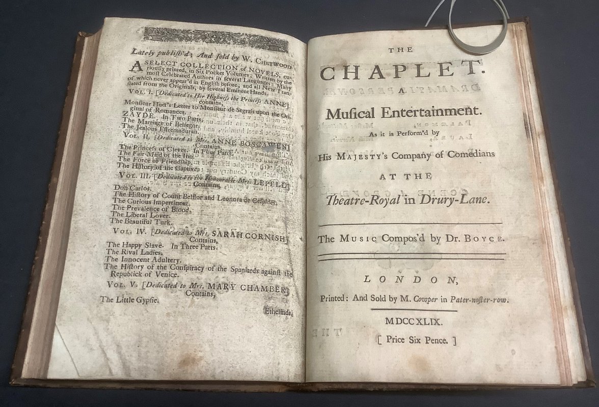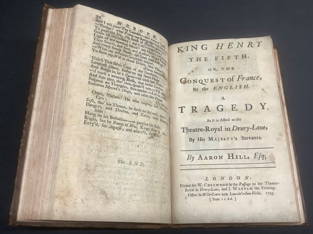 THE ROMAN REVENGE: A Tragedy (1753); MEROPE: A Tragedy (1740); KING HENRY THE FIFTH or The Conquest of France by the English. A Tragedy (1723); THE CHAPLET: A Musical Entertainment (1749) 4 PLAYS BOUND IN 1 VOLUME