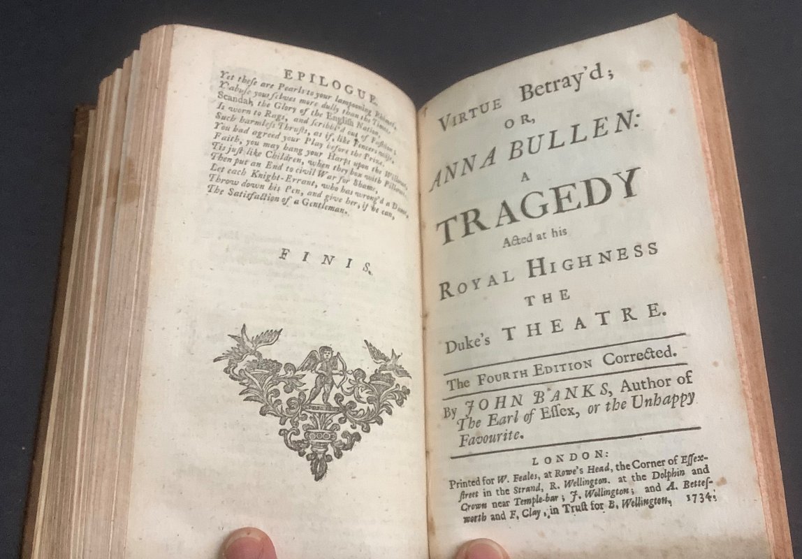 CYRUS The GREAT or THE TRAGEDY OF LOVE (1735); THE ALBION QUEENS or THE DEATH OF MARY QUEEN OF SCOTLAND (1734); THE UNHAPPY FAVOURITE or THE EARL OF ESSEX: a Tragedy (1735); VIRTUE BETRAYED or ANNA BULLEN: A Tragedy (1734) 4 PLAYS BOUND IN 1 VOLUME