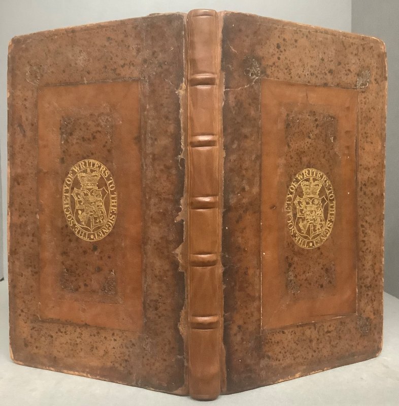 FIRST EDITION 8vo. (approx. 20.3 x 12cm) hardback in contemporary calf, rebacked, with gilt insignia of The Society Writers to the Signet to upper and lower boards. TEXT IN LATIN. Parma Equestri: xxviii, [4], 114pp., Indexed, with foldout engraving of a shield. Collegiorum: pagination runs on from Parma Equesti, pages 115-150, with title page, vignette engraving of a tree, and 17 engravings of the Oxford Colleges. Small rubber stamp (RS II) to front pastedown. Foldout plate has light creases to outer edge and has been trimmed at foot so that part of caption is missing (please see photo). Occasional light foxing, heavier to prelims. Light edgewear to original boards, else a VERY GOOD COPY.