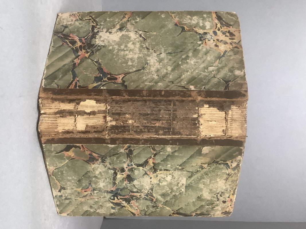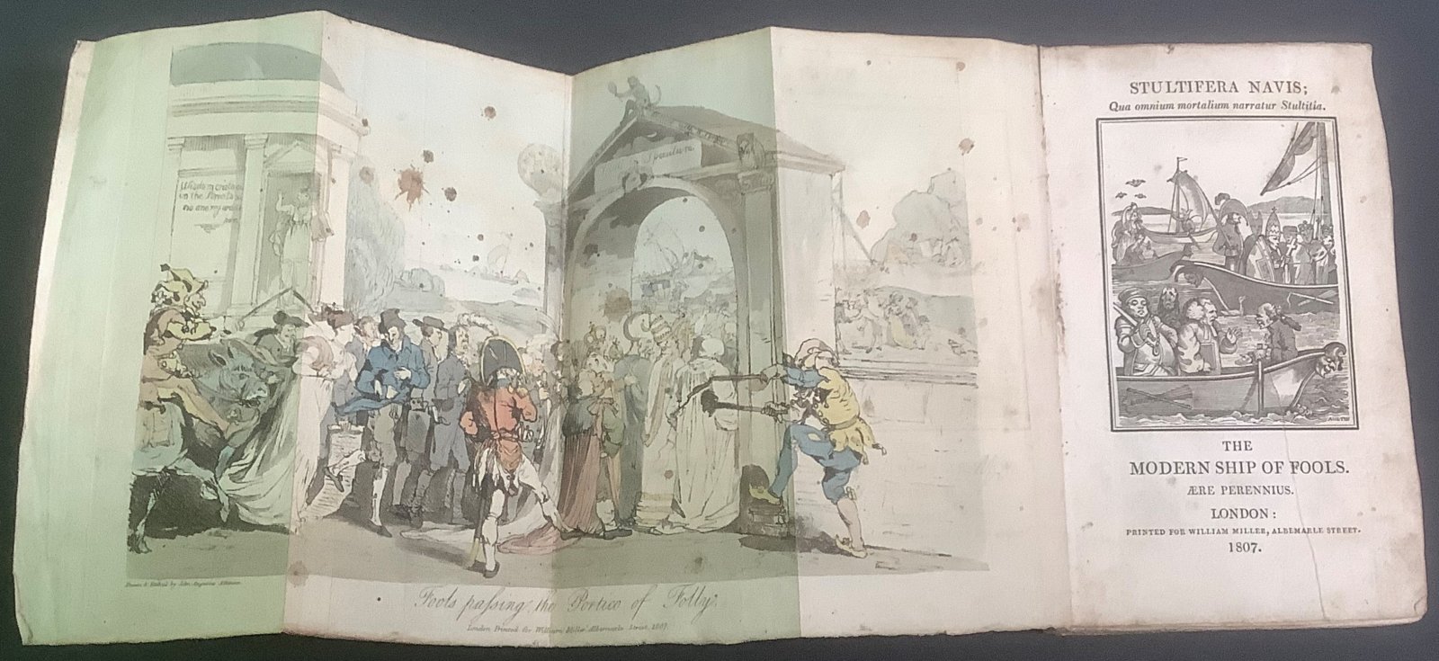 Small 8vo. (approx. 16.5 x 10cm) hardback with remains of calf spine, gilt, and marbled boards. xxiv, 295pp. plus 8pp. Publisher's Advertisements at end. With large fold-out hand-coloured frontispiece of the "Fools passing the Portico of Folly" by John Augustus Atkinson and engraved vignette to title page. A clean copy with no previous owners' markings or inscriptions. Lacking rfep. Colour plate rather soiled and creased. Occasional light foxing. Lacking most of spine and boards worn and rubbed (please see photos). A Good Reading Copy only.