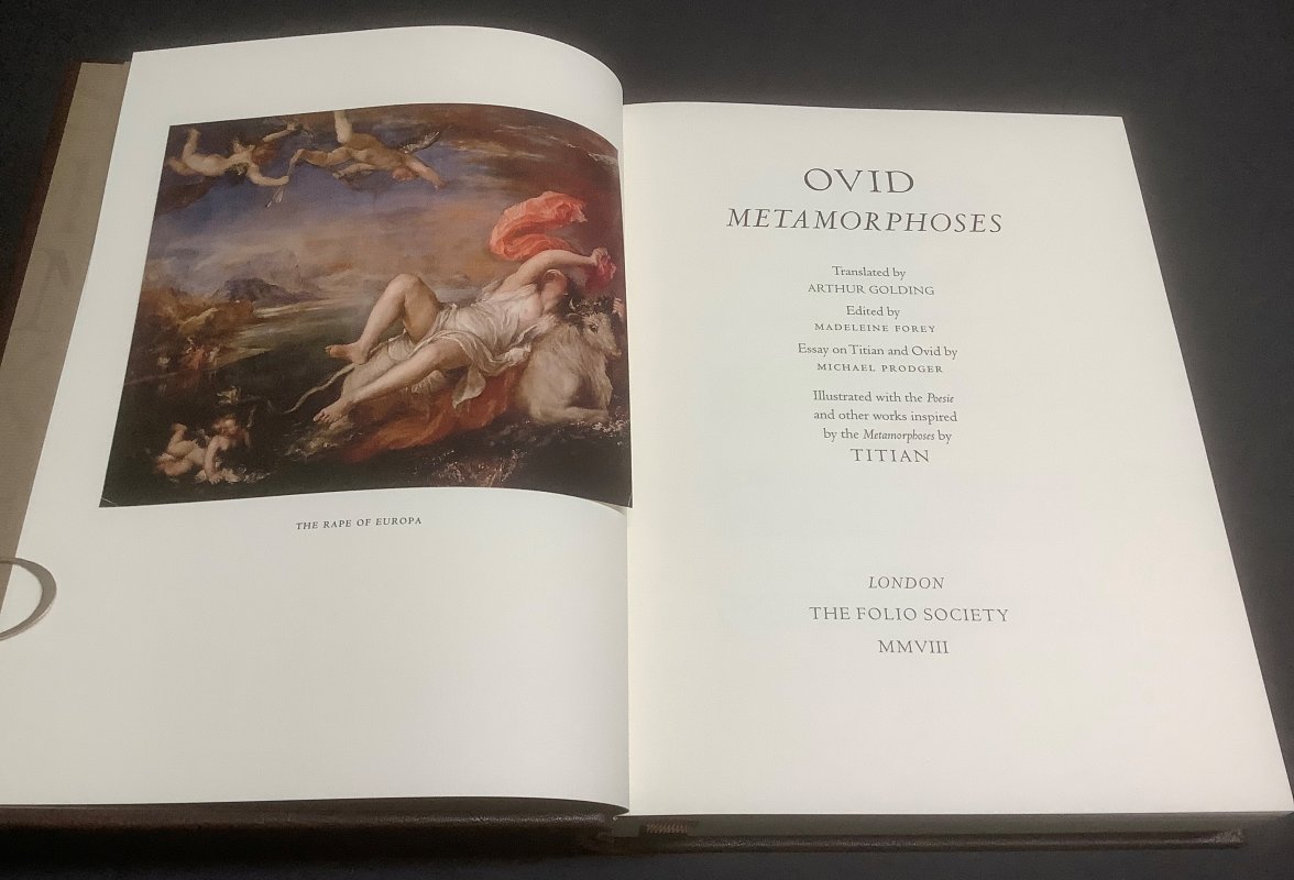 LIMITED EDITION Number 296 of 2750 numbered copies. Folio(approx. 33 x 25cm) hardback in full brown morocco, gilt, with gilt illustration to upper board. Housed in a brown buckram-bound, custom-made solander box, gilt. 378pp., illustrated with 16 tipped-in colour plates by Titian. With Folio Society blurb enclosed. Armorial bookplate to front pastedown. A VERY GOOD COPY in VERY GOOD SOLANDER BOX.