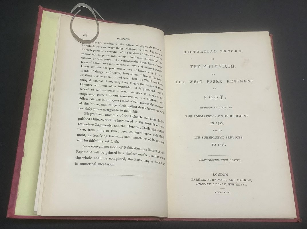 HISTORICAL RECORD OF THE FIFTY-SIXTH, or THE WEST ESSEX REGIMENT OF FOOT: Containing an Account of the Formation of the Regiment in 1755, and of its Subsequent Services to 1844. Illustrated with Plates.