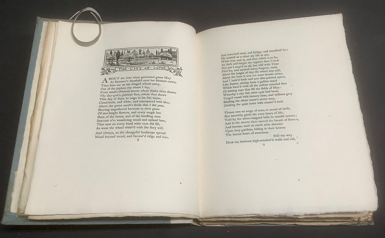 LARGE PAPER LIMITED EDITION No. 17 (of 35) of the American Edition (65 for the English Edition). Small 4to. (approx. 23 x 18cm) hardback with cream vellum spine, gilt, and blue/grey paper-covered boards. 162pp., illustrated with various head and tail pieces and vignettes by Walter Crane. Ink initials to verso of ffep. Some browning to endpapers and untrimmed foredge a little dusty. Slight soiling to lower outer corner of upper board (please see photos). Very slight soiling to spine. Overall a GOOD+ COPY.