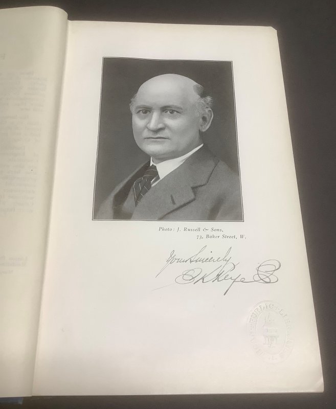FIRST EDITION, Signed Copy. Large 8vo. dark blue clothbound hardback, gilt. [xiv] + 727pp., indexed, b/w portrait frontispiece, with Author's signature beneath, illustrated throughout with b/w plates, marbled endpapers, t.e.g. Also signed by the Author to title page. Ex. Library with bookplates and stamps and handwritten name of library to upper board and stock number to spine. Damp staining to lower board and wear to spine edges. Overall a Sound Copy.