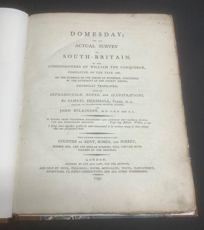 Domesday, or an actual survey of South-Britain, by the Commissioners of William the Conqueror, completed in the year 1086: This Number Comprehends the Counties of Kent, Sussex, and Surrey.