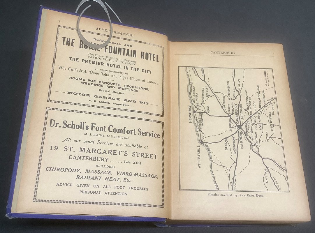 THE CANTERBURY AND DISTRICT, HERNE BAY and WHITSTABLE BLUE BOOK AND LOCAL DIRECTORY 1937. Forty-Fourth Issue.