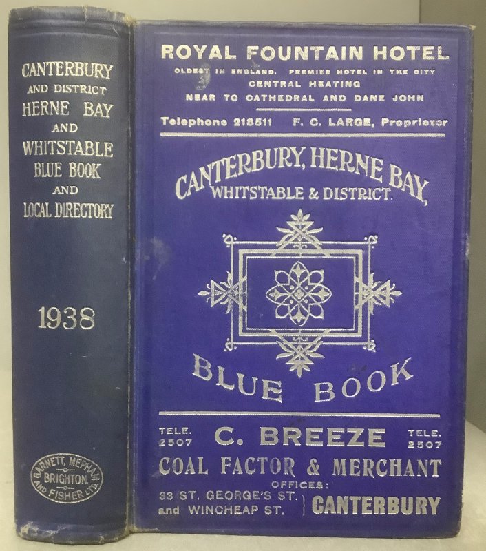 THE CANTERBURY AND DISTRICT, HERNE BAY and WHITSTABLE BLUE BOOK AND LOCAL DIRECTORY 1938 Forty-Fifth Issue.