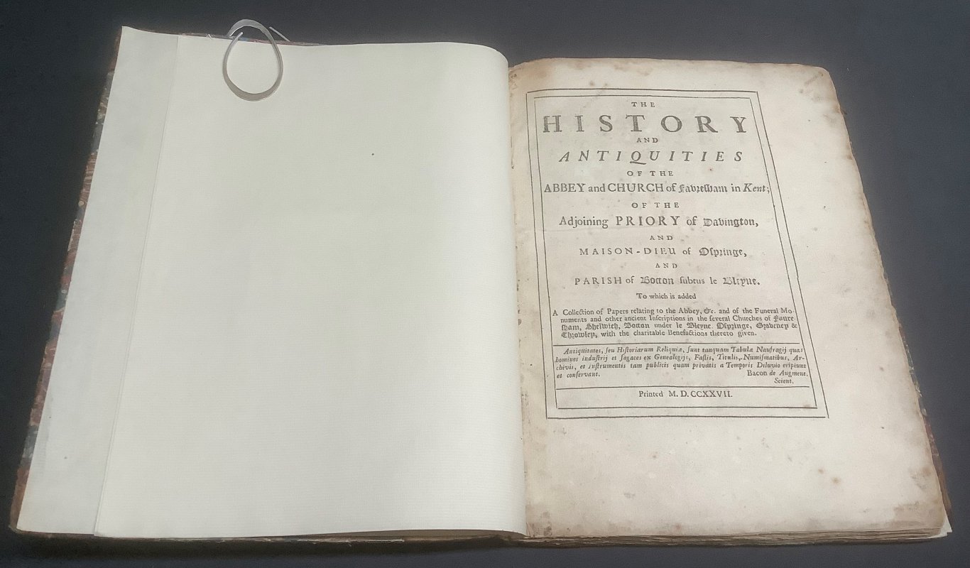 The History and Antiquities of the Abbey and Church of Faversham in Kent; of the Adjoining Priory of Davington and Maison-Dieu of Ospringe, and Parish of Bocton subtus le Bleyne + FUNERAL MONUMENTS IN THE CHURCH OF FAVERSHAM (2 Volumes bound as 1 - Extra To which is added a Collection of Papers relating to the Abbey, etc. and the Funeral Monuments and other ancient Inscriptions in the several Churches of Faversham, Shelwich, Bocton under Le Bleyne, Ospringe, Graveney & Throwley, with the Charitable Benefa