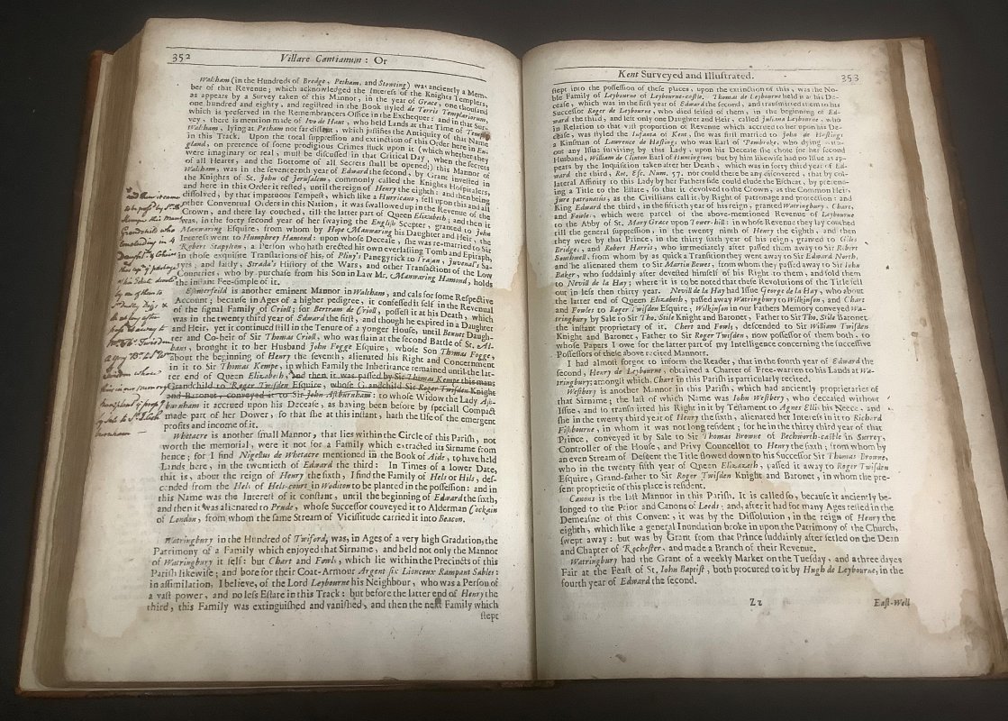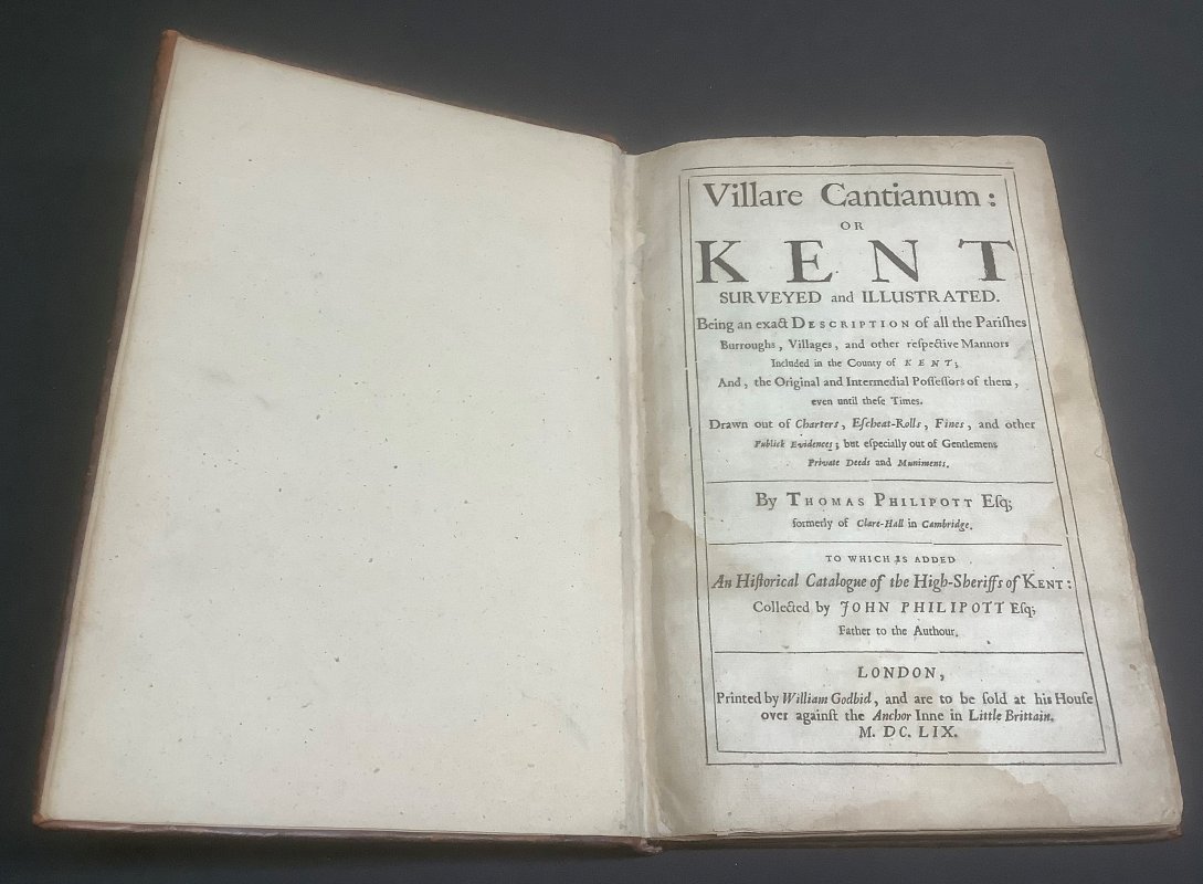 VILLARE CANTIANUM: or KENT SURVEYED AND ILLUSTRATED Being an exact Description of all the Parishes, Burroughs, Villages, and other respective Mannors included in the County of Kent; and, the Original and Intermedial Possessors of them, even until these Times. Drawn out of Charters, Escheat-rolls, Fines, an