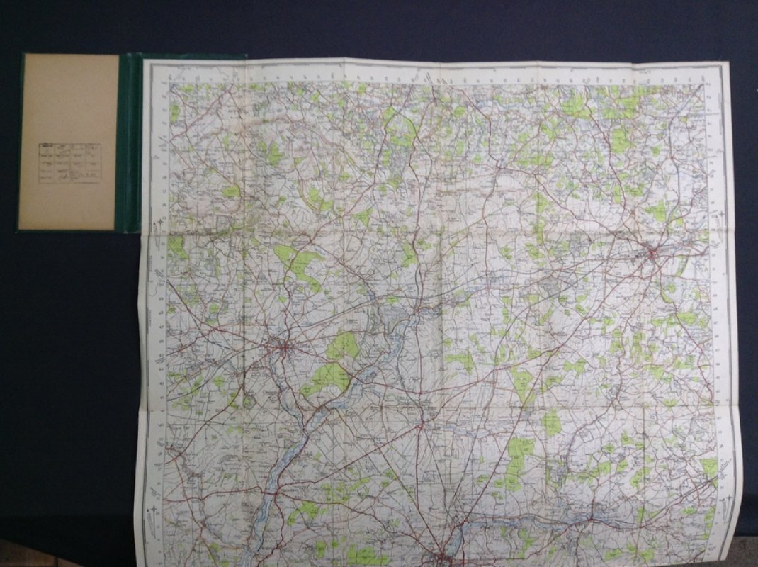 OS Map, linen backed, and bound into green cloth hardcovers, gilt. Ex-library copy with number to spine of boards, label to front pastedown, and stamps to inside of front cover and to map. Previous owner's attractive black and white bookplate to ffep. Light handling wear to the map and covers, VG overall.